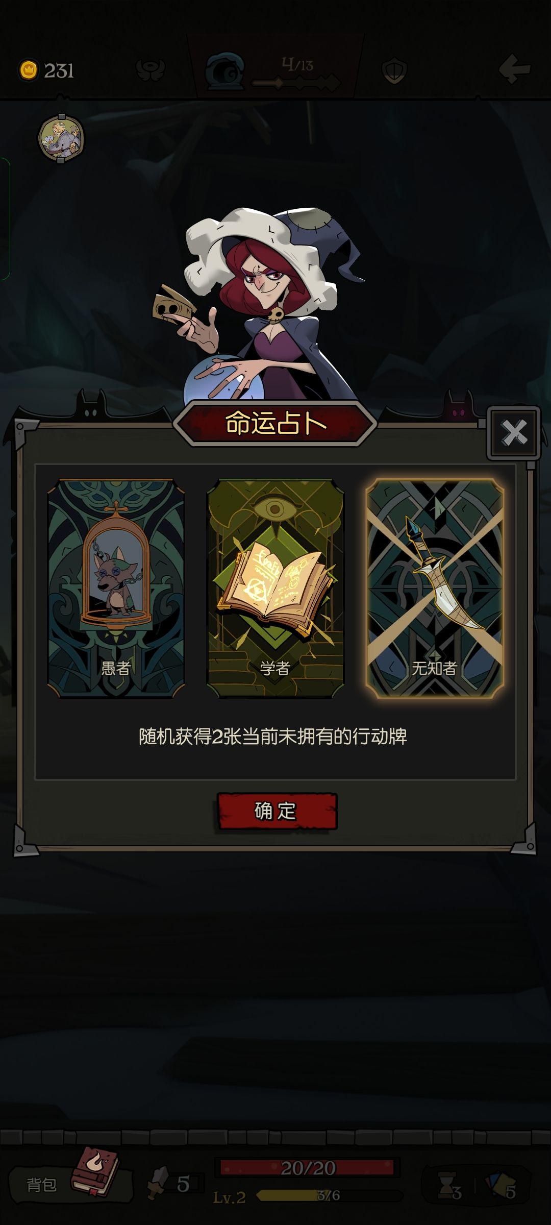 无知者:随机获得(2~3)张当前未拥有的行动牌