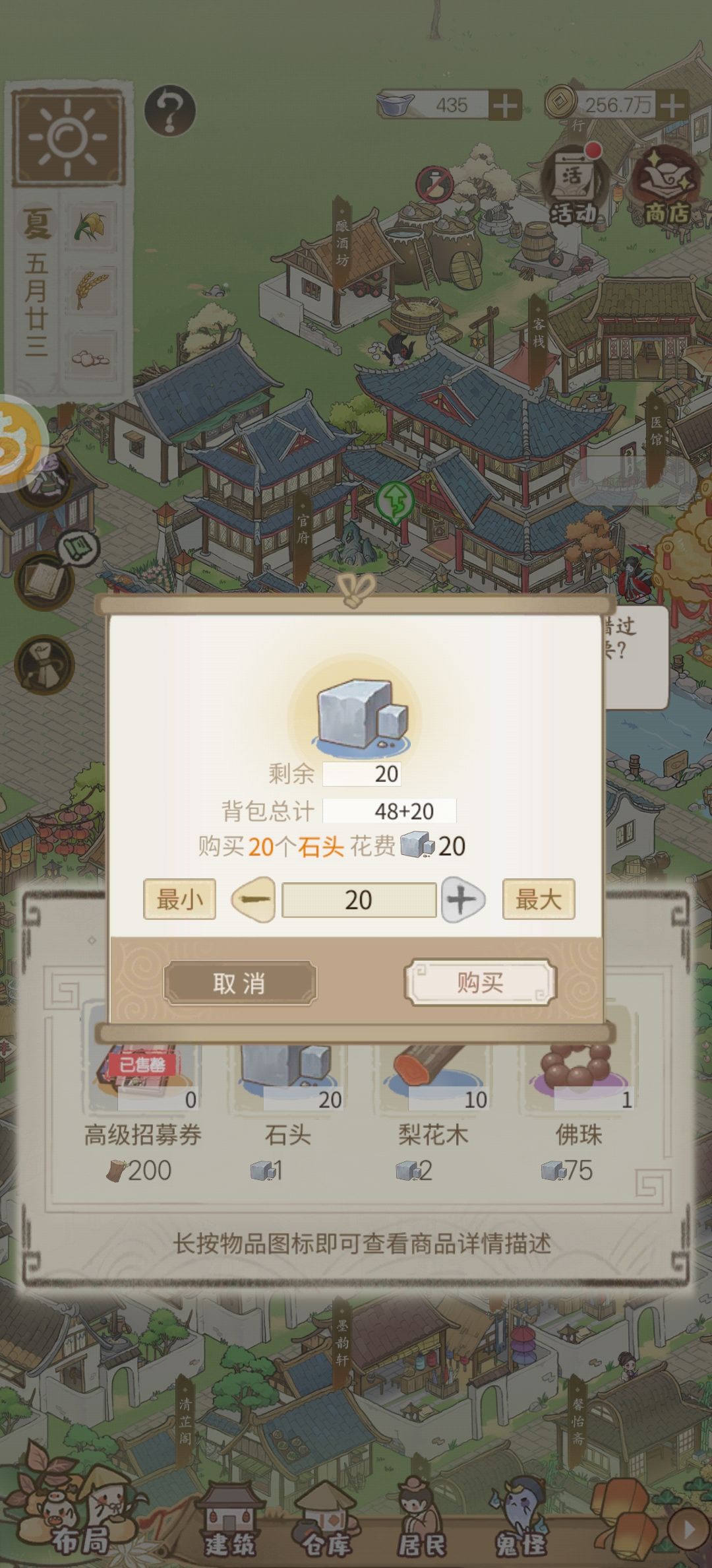 上午100个石头买20个石头,下午20个石头买20个石头。