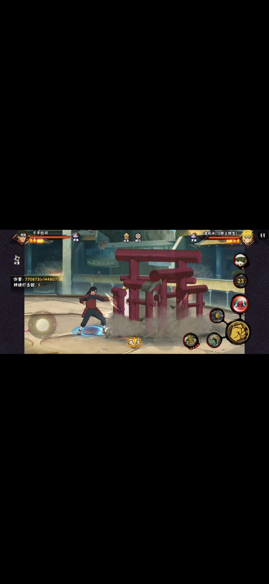以我个人观点,这种把所以技能和秘卷都抛出去并且还是像柱间这样大招不能接的忍者的做法是不明智的!除非是在斩杀线上!但是之前血量全部提升,活柱间想要一套带走越发困难