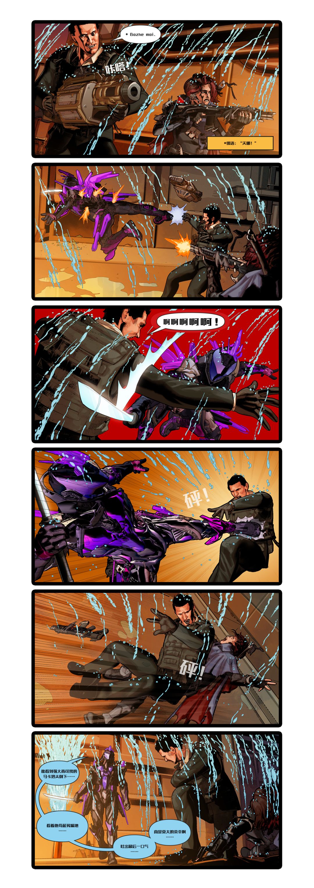 幽魂干净利落的攻击瞬间便将三人击倒,彼此的实力差距让马卡洛夫失去了他的手臂...