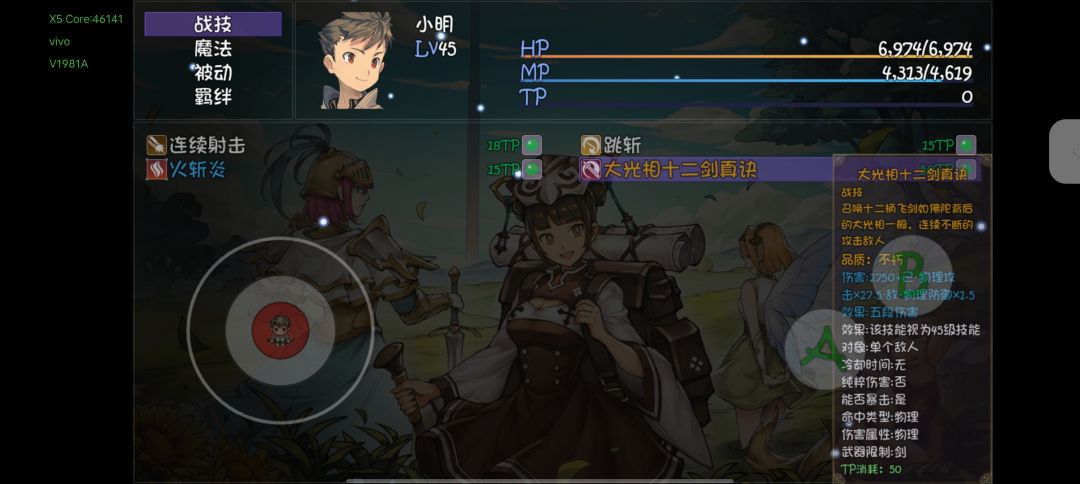 第一个是大光相十二剑,武器限制为剑,5段伤害45级技能,伤害属性是物理,消耗50tb。