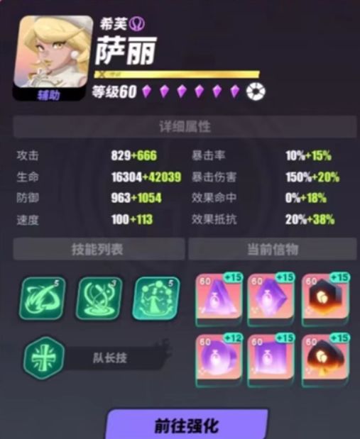 输出:炮狗作为破防+持续输出的角色自然是可以塞进蛇16的,有了炮狗能够稳定帮你补牛牛没上上去的破防,并且能够打出不错的输出,唯一缺点就是有点多动症;ra和阿努比斯则是能帮助你快速清小怪,这里根据个人有没有练这两张卡酌情选择就好了,ra有穿防和自加攻,阿努比斯则是可以2技能补破防。要求:辅助:速度严格来说没有要求,但是一般来说都是赫拉一速来上免疫,其他随意,瑶瑶则是回合越多清debuff越快,因此这两个是速度越快越好。信物配置:赫拉、玫瑰:有条件就高速水神,不行的话风神也可以,赫拉2件套可以带剑神,玫瑰随意。满共鸣萨丽:必须带水神,2件套最好带光神牛牛和炮狗要保证至少一个人能够稳定上破防,所以有条件可以去堆命中。Ra、阿努比斯:收尾,可以选择6号位不带速度极限输出,面板堆到攻击+3500,爆伤+150%左右(达不到也可以,但是要保证尽量接近这个面板)如果输出存在生存压力可以带冥神,其他无严格要求,面板自然越高越好,蛇是一个你刷的越快翻车率越低的副本,尽量保证减少多动防止翻车。下面给出一队参考阵容: