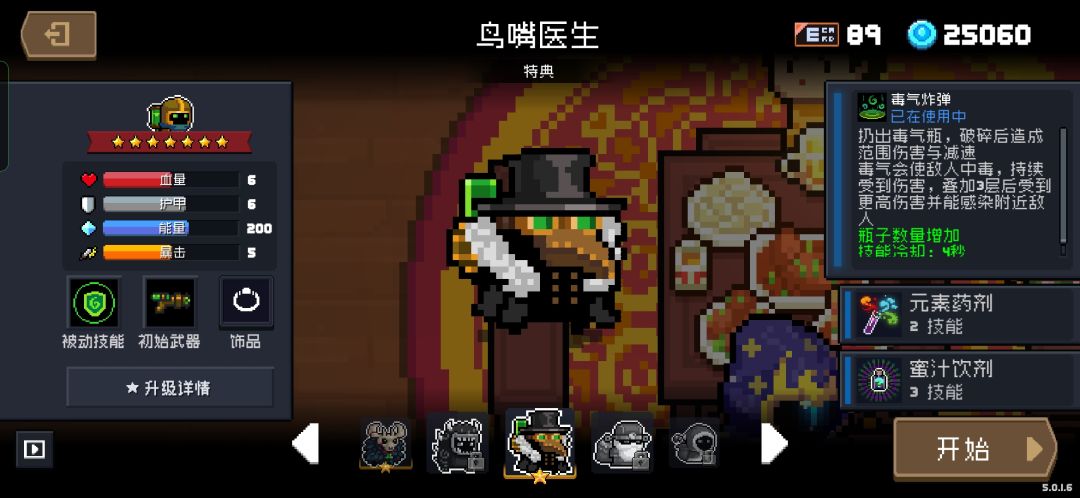 推荐天赋:炼气要诀(增大手刀清弹幕范围),冰盾(配合练气要诀无限控制),散弹增加(增加毒瓶数量以增加输出),其他的自己斟酌,看自己能力和运气选择保命或输出天赋,建议多选保命型的