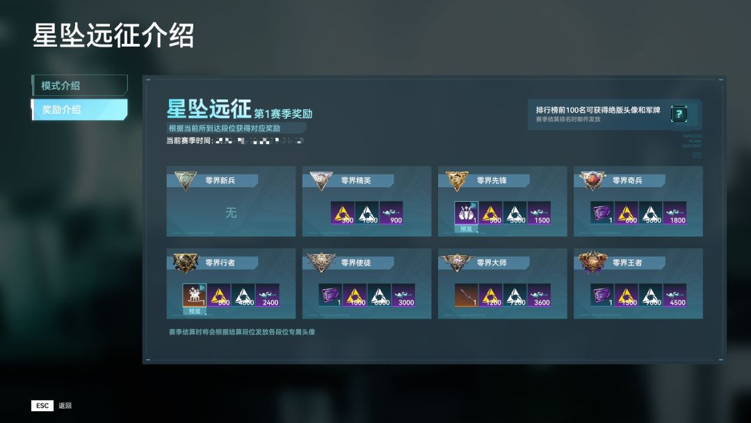 ◊ 每赛季的奖励分为段位奖励和结算奖励,段位奖励为当玩家达到对应段位时直接发放(仅可领取一次),结算奖励将会在赛季结束后根据玩家的段位和积分排行榜排名进行奖励发放
