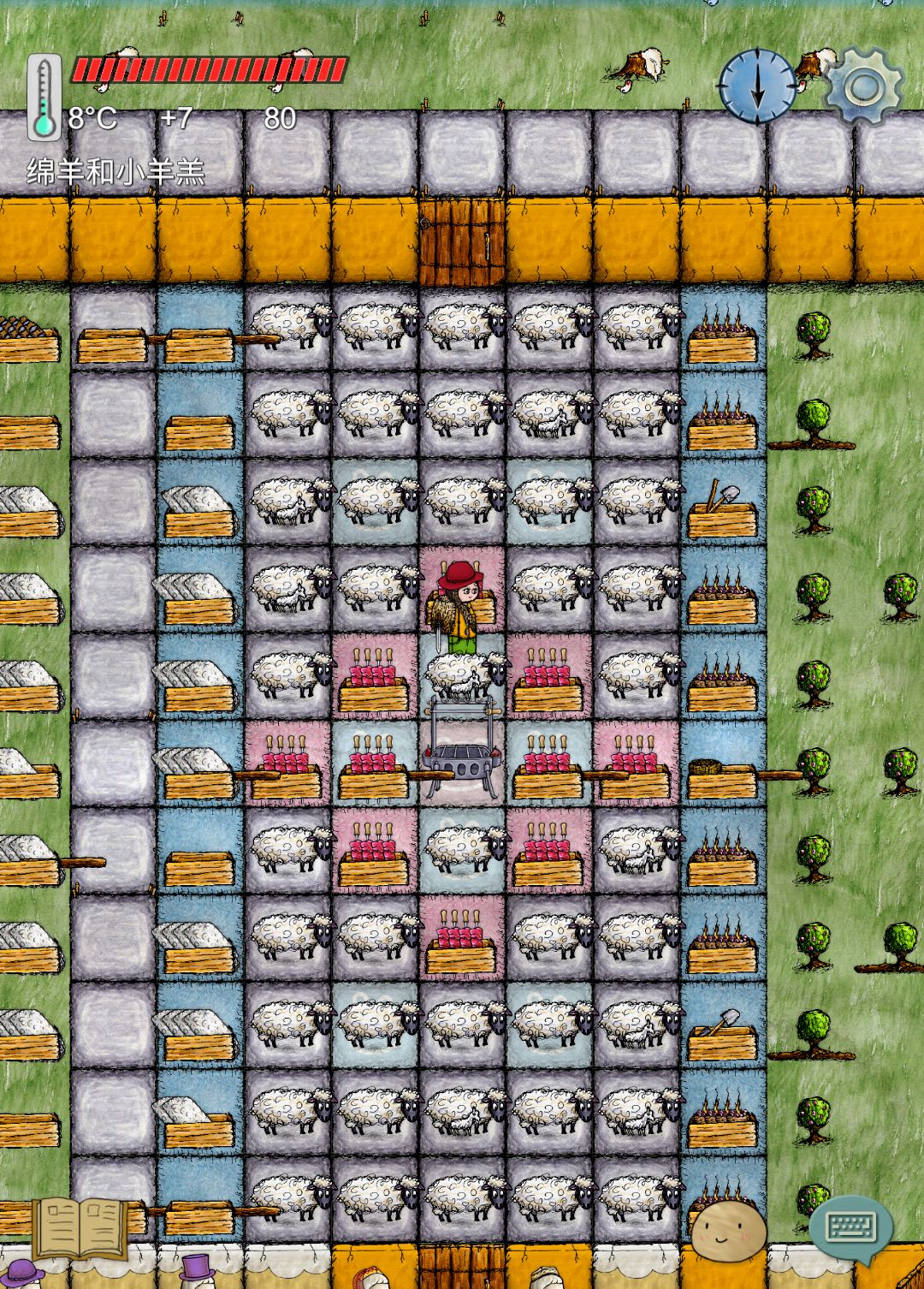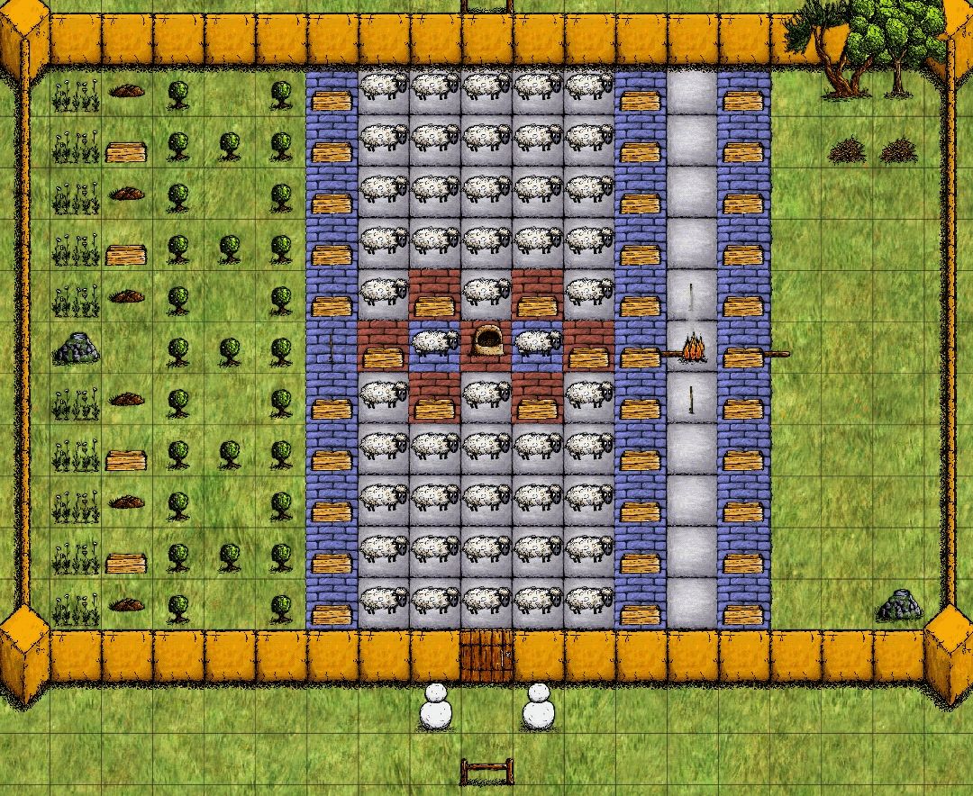 左边喂羊 中间烤羊肉 右边做布做衣服 或者做羊毛毯 染色都很方便