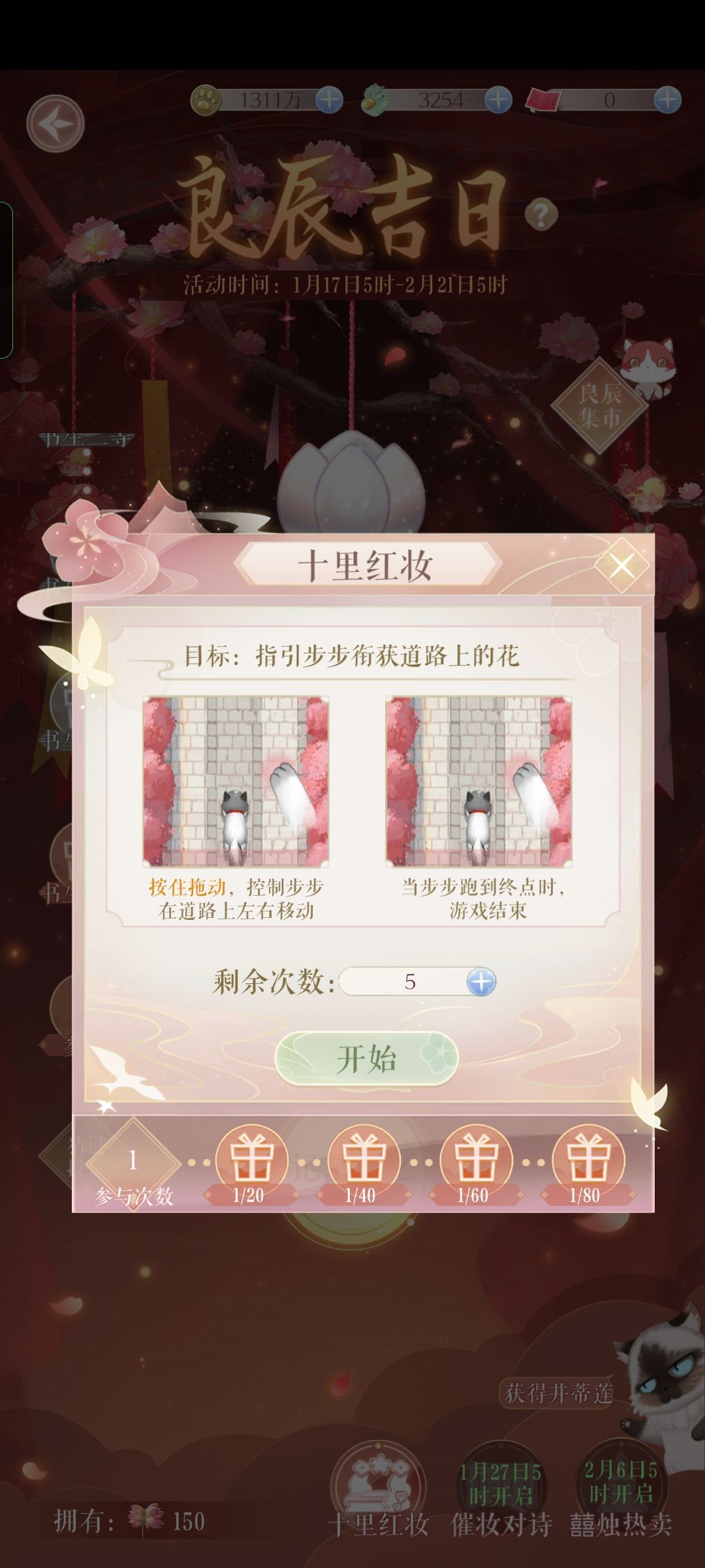 十里红妆小游戏每天免费送6次,多的需要花费猫爪玉够买。