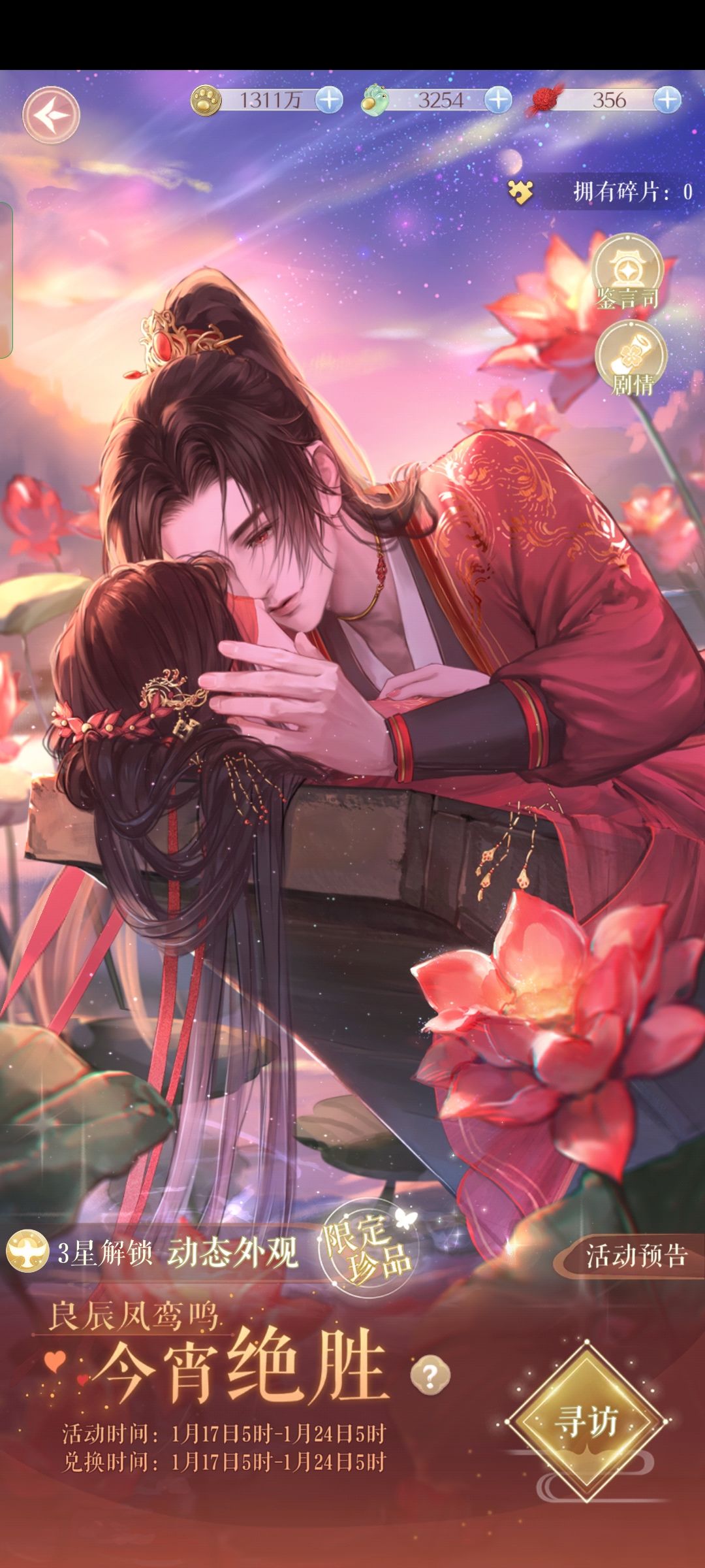 这是本期抽卡活动,可以获得男主的婚卡,每位男主卡池是七天。