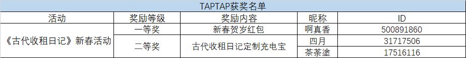 【兑奖方式】恭喜以上小东家!请获奖小东家于2023年2月13日24:00之前添加官方QQ:2803820662(记得备注:《古代收租日记》新春兑奖哦~),管理员会在截止兑奖前完成登记,逾期则无效,还请小东家们抓紧时间~