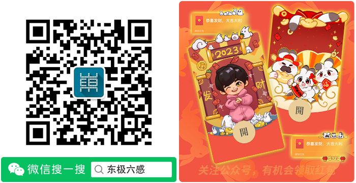 另外,为了感谢大家的支持,我们还为大家准备了两款—— 🧧🧧2022兔年专属红包封面🧧🧧关注【东极六感】微信公众号,红包获取方式将随后告知(红包还在审核😭我们会加紧发布的)