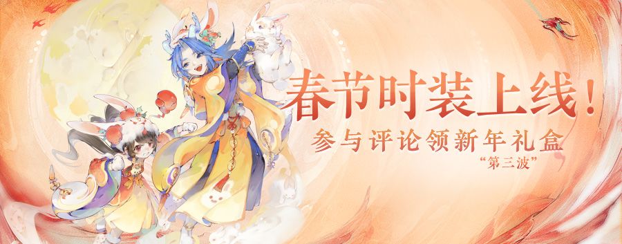 除了丰富的新春好礼之外,全新的春节主题时装——“仙兔嬉月”即将降临!第三波“大展鸿兔”礼盒也将送出,记得看到最后哦!