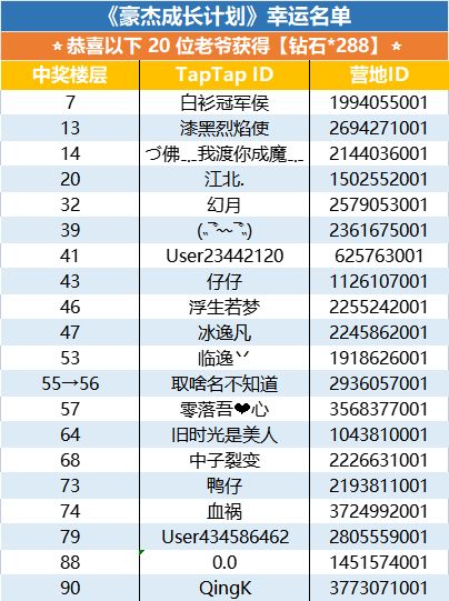 恭喜以下20位留言的幸运老爷获得【钻石*288】的奖励!