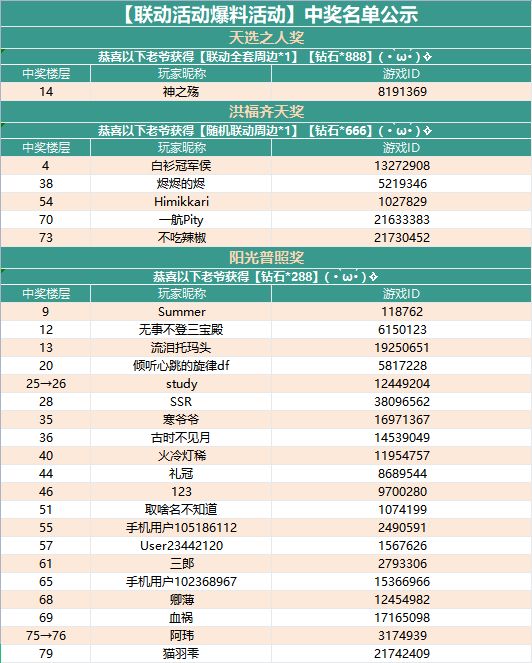 感谢大家的热情参与,中奖名单新鲜出炉啦!