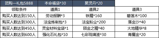【活动简介】活动期间内,道友们可购买活动界面的团购商品。当购买团购商品的人数达到一定数量时,购买过该商品的道友们可以额外领取相应奖励。