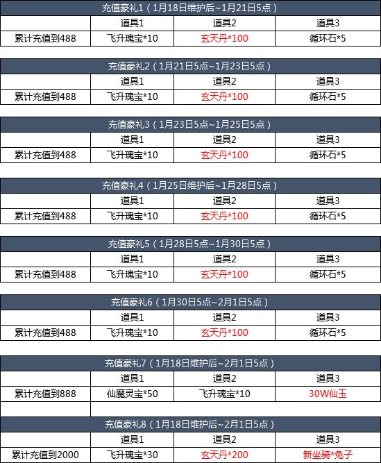 4、喜迎新春每日充值6、30、888档位奖励调整