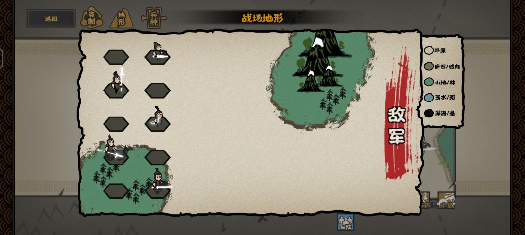 进攻韩国的南阳,前排中心放一队弓兵,因为要触发井阑和冲车,其余四队全拿骑兵