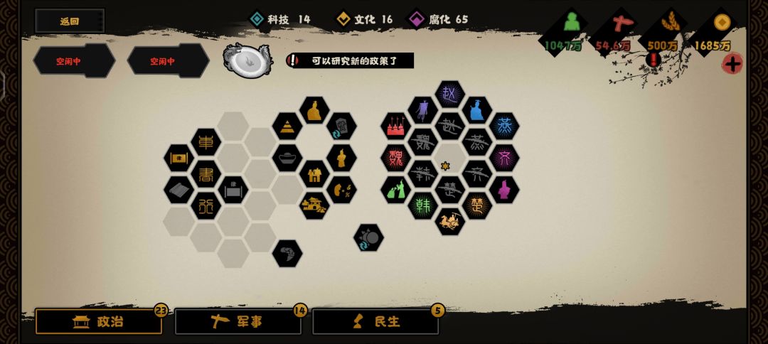 2,不要实行多余的政策,我们这套打法的核心就是水利和其他军事政策以及用间
