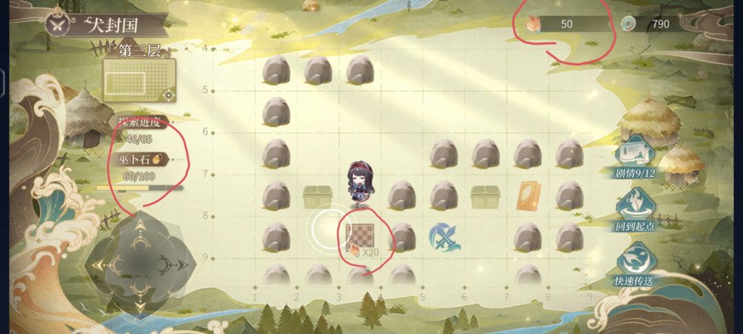 6,就一路走下来,看到什么点什么就好了,温馨提示,进入下一层需要条件,要完成相应的猜谜,进入第二关要20个,进入第三关要60个,多玩几次就好了