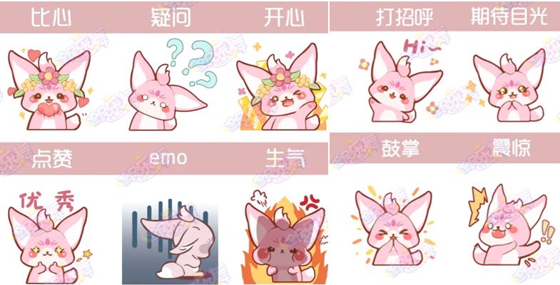 新版本中,全民乐舞首次尝试,以宠物迷小狸为原型,变身为Q萌的聊天表情包。首批准备了10个表情:比心、疑问、开心、点赞、emo、生气、打招呼、期待目光、鼓掌、震惊,通过等级、会员、时尚等级等方式进行表情的解锁。