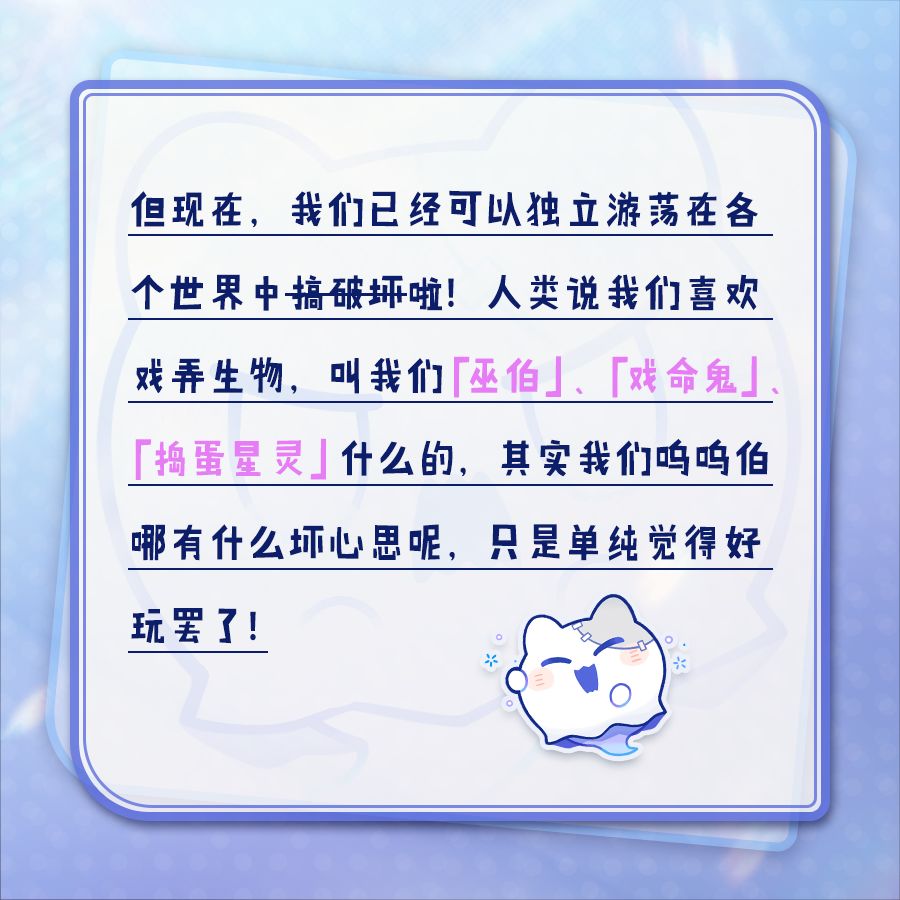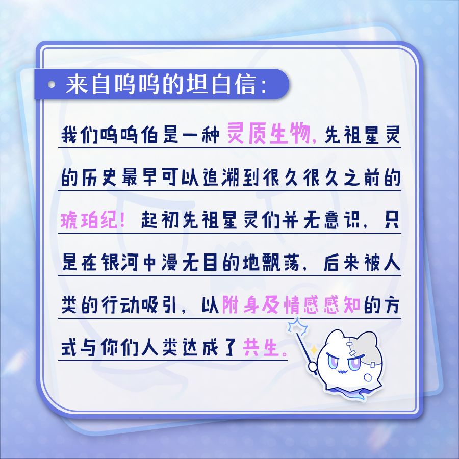 虽然一直以来因为好玩隐藏了自己的身份,但呜呜其实是一名如假包换的「呜呜伯」没错。呜呜会时不时会去观察银河中跃迁的星穹列车,并跟随列车偷偷前往各个星球进行冒险(至今没有被抓到)!在跟随大家冒险的途中,呜呜观察到了很多有趣的人和故事,开拓者如果感兴趣的话,呜呜也可以分享给大家。