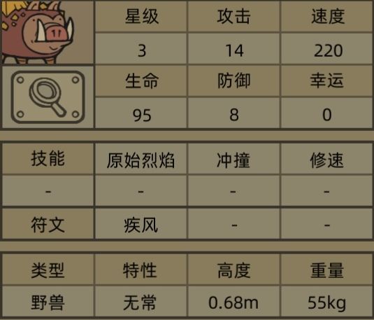 全身炙热的野猪幼崽,奔跑时背部的鬓毛会像烈火一样在风中摇曳。