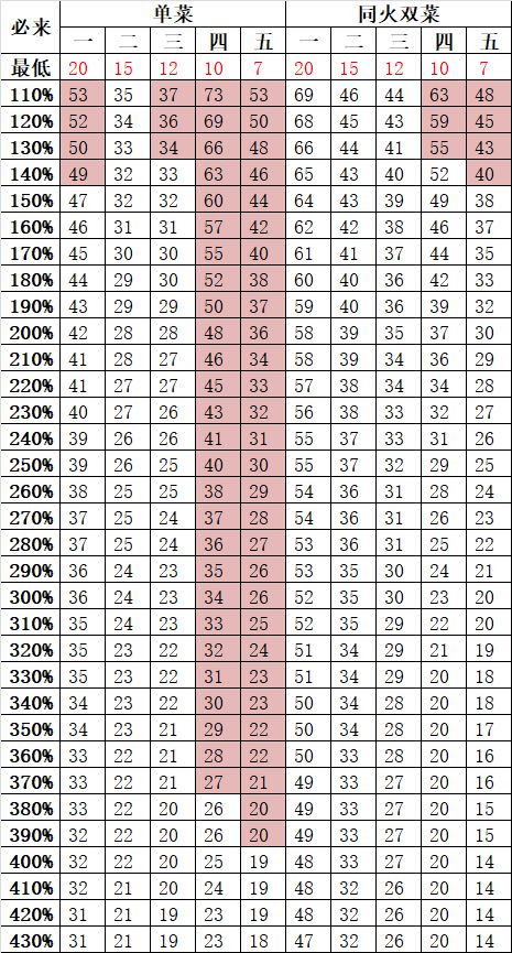 效率指的贵客来一次的平均份数,越低越好,四五火和一二三火的明显不一样。