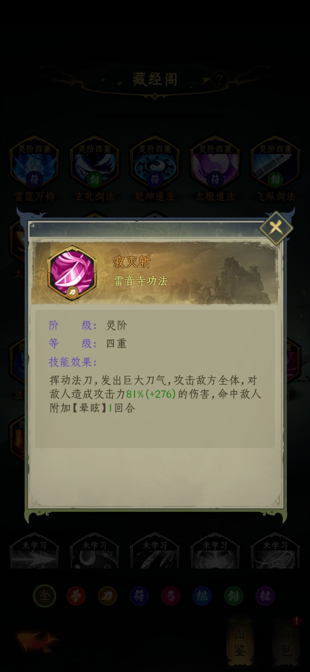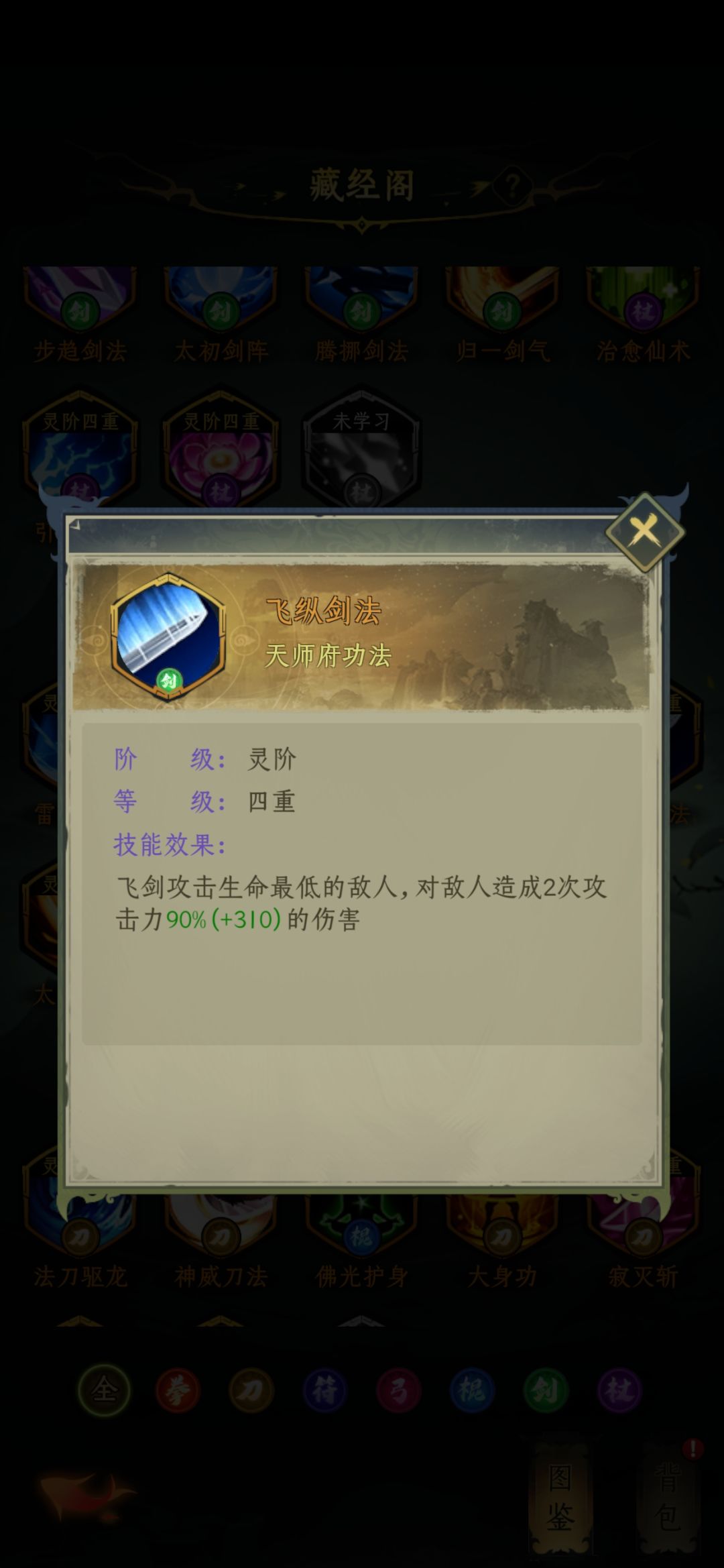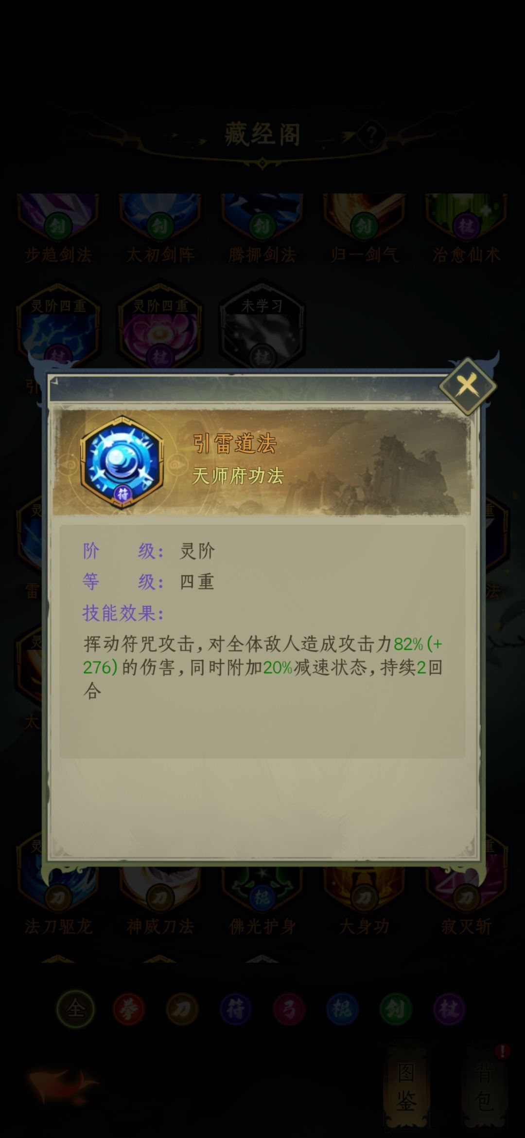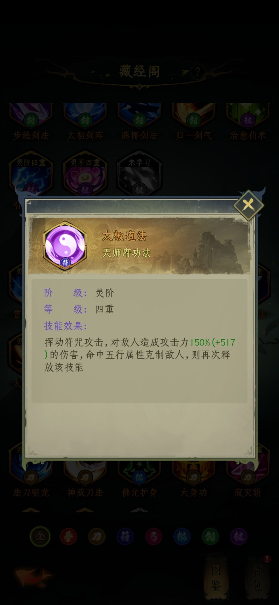 天师府技能介绍完毕,推荐乾坤、雷霆万钧、玄牝剑法,其余备用