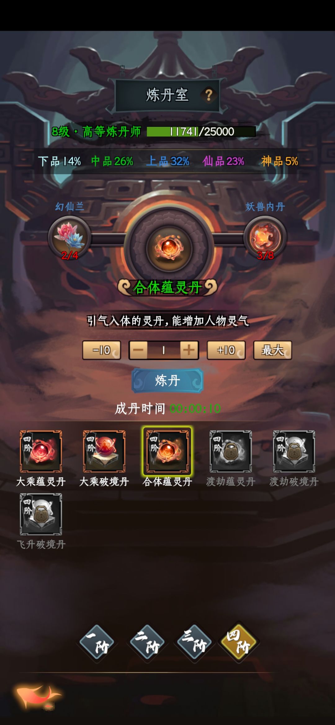境界的提升需要灵气,灵气获取种类:蕴灵丹>福地洞天>修练室>道侣系统。