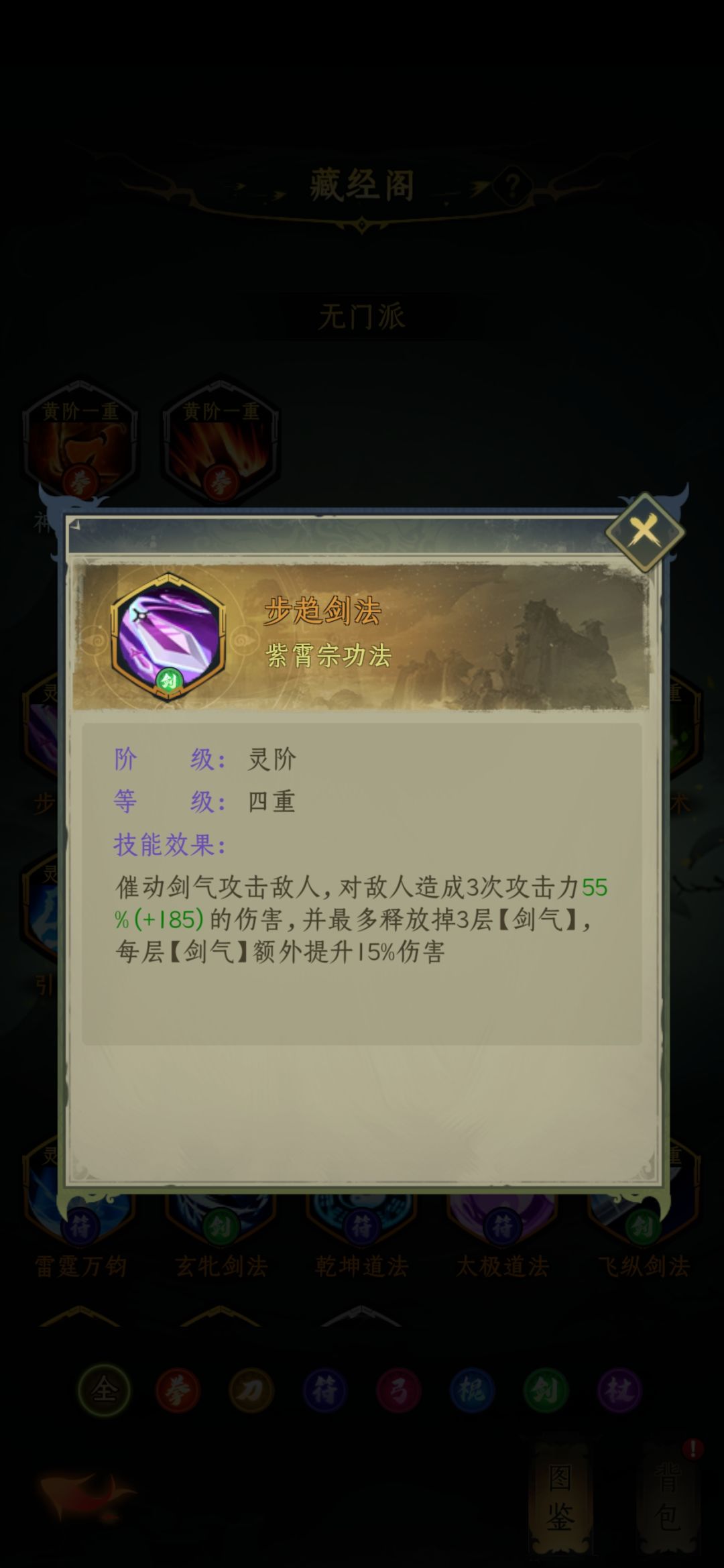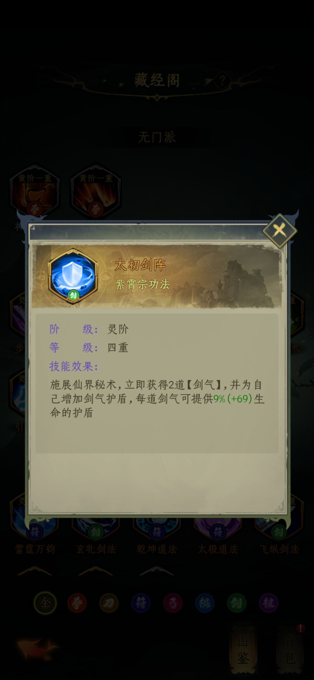 好了,紫霄的技能介绍完了,暂推荐太初剑阵+步趋剑法,腾挪剑法备用。