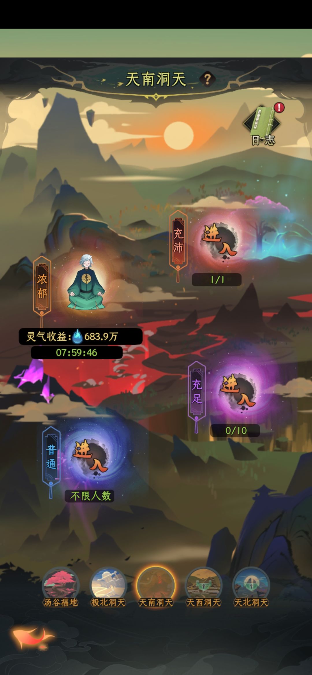 2、洞天福地:筑基期开始,每一个境界,通关当前境界的大陆后都会进入一个新的洞天。每个洞天有4大福地,获取灵气越高的能进入到人数越少,分为1人>5人>10人>无限制。每次在福地修炼的时长为8小时(感谢官方,从6小时更改为8小时,6小时很累的)。福地可以抢夺别人和被抢夺,被抢夺后不会损失已经修炼来却没有领取的灵气,但是会让你进入当前洞天最垃圾的福利里。很有趣的一个玩法,在这里你会结识一些朋友,也会树立一些仇敌。