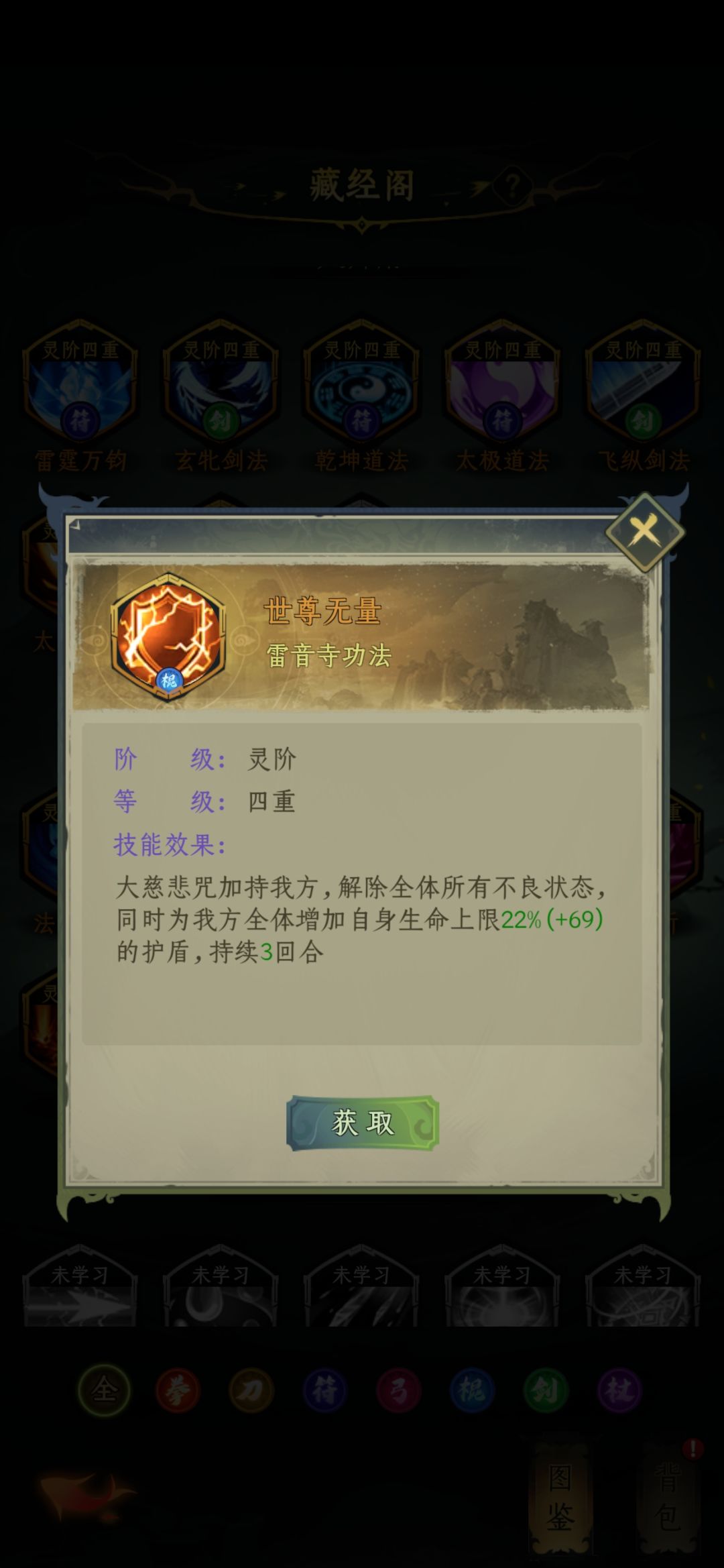 定位就不说了,大家自己体悟吧,满级心法开局开启32%生命护盾,pve必进的门派,分为刀、棍技能