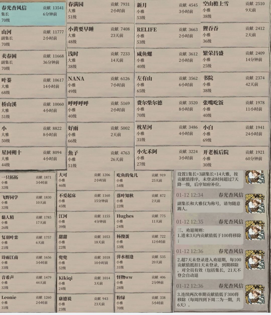 鱼子,贡献值4763,抵扣未登录时长47天,已有26天未登录,2023.2.8前未登录将请离。