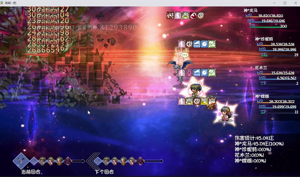 如果风怒符文没bug,应该是5段,大概63e,再加上配速吃到治疗的buff,以及还有许多buff类装备还没刷出来,保守估计第一回合单动应该能达到80e以上