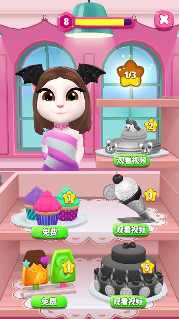 疯狂糖果活动我们需要带上安吉拉进入到甜点屋,在甜点屋中我们可以制作小蛋糕,冰淇淋,水果冰棍等等,如果想要体验还没有解锁的玩法的话,也可以通过观看视频免费体验一次哦。每次制作完成都会获取大量的玩法经验值以及一颗星星,解锁神秘服饰不是梦!