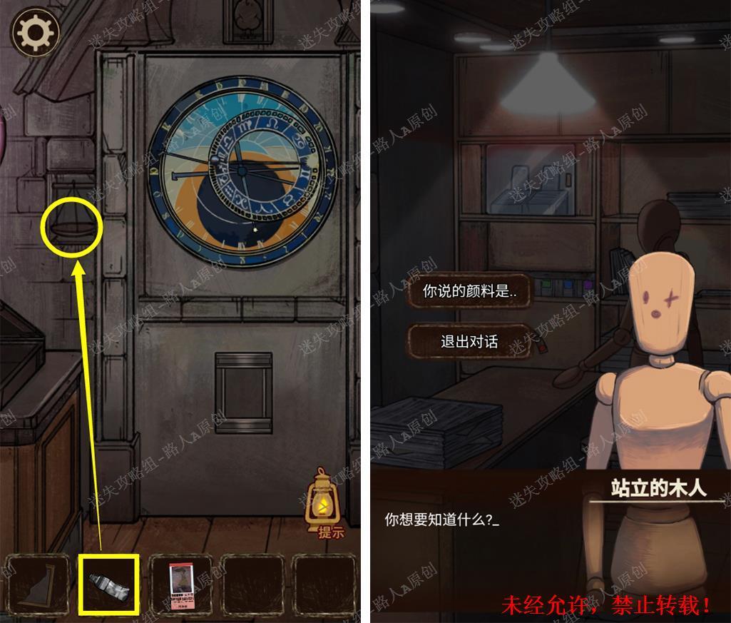 49.将【画框】放入门侧的小盘,将颜料交给木头人。49.1