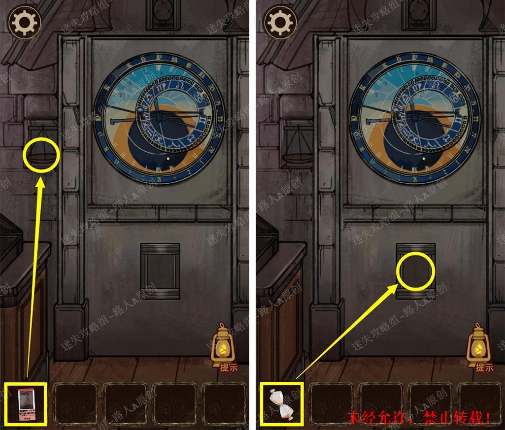 56.将【美术馆门票】放入门侧的小盘,将【沙漏】放入门上的凹槽。56.1