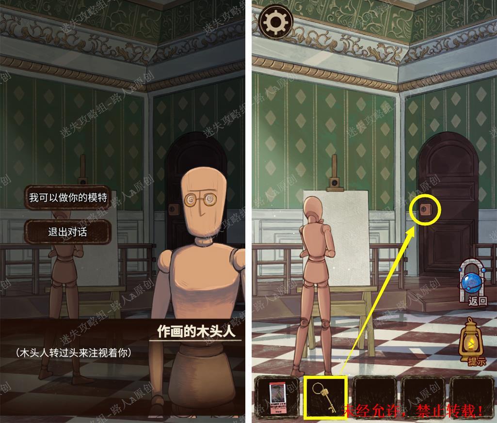50.答应木头人的模特请求,用【钥匙】打开更衣室。50.1