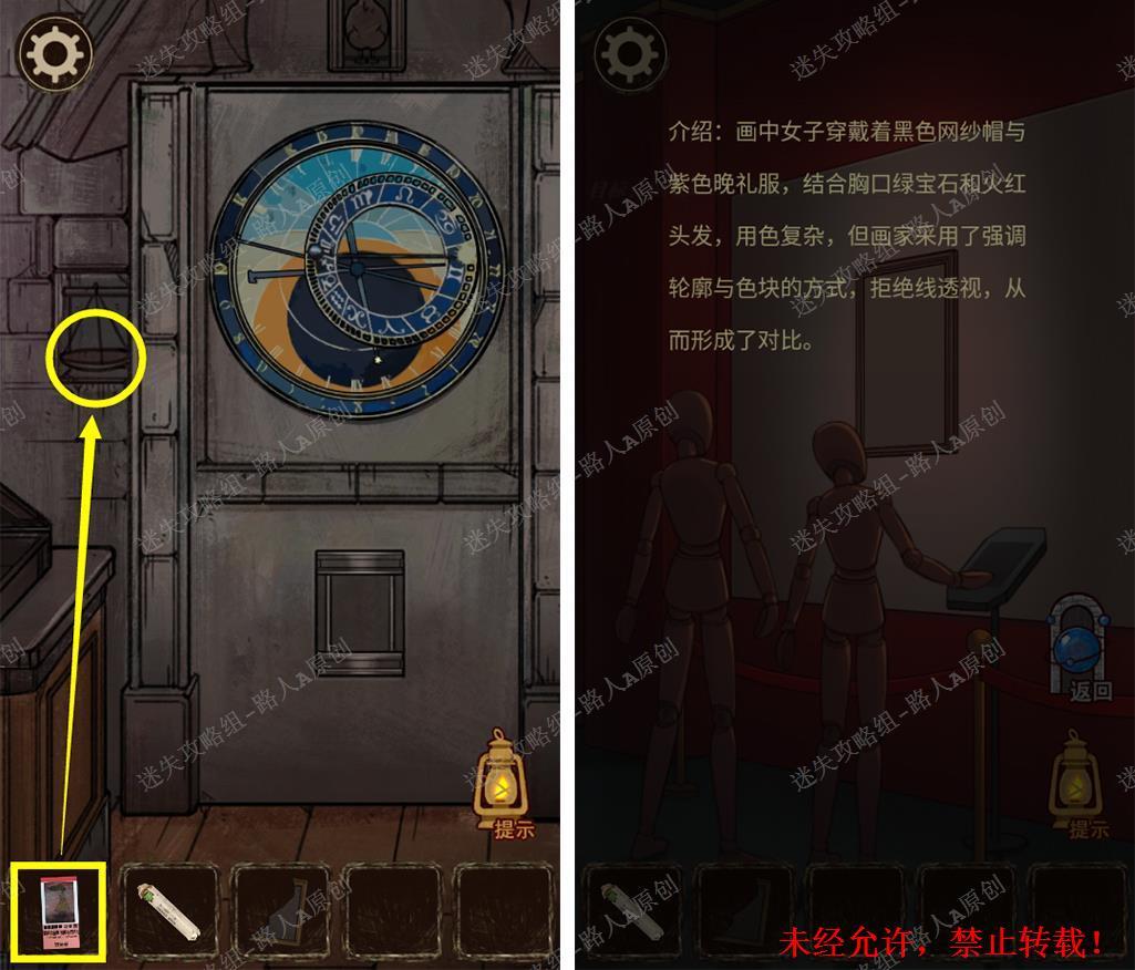 48.将【美术馆门票】放入门侧的小盘,查看画作的介绍板,得到画中女子的穿戴线索。48.1