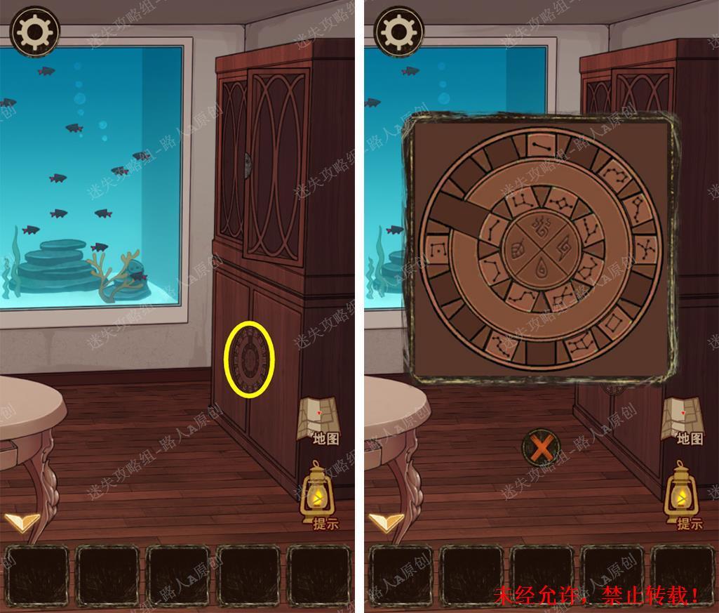 78.根据房间星象和门牌图案的线索(攻略步骤77),打开柜子的罗盘锁,查看档案袋。78.1