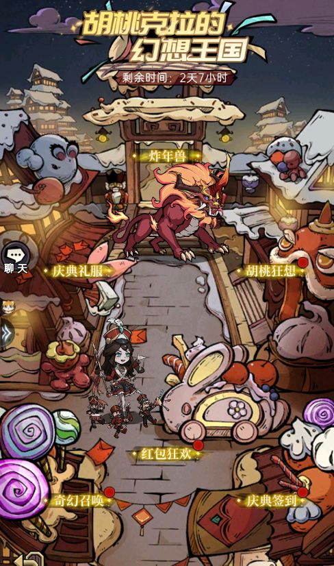 每到年末的午夜,年兽就会进攻村子,凡被年兽占领的村子都遭受到伤害,人们会放爆竹、贴春联,以此来驱赶年兽,收集击落的年兽牙,与爆竹融合,可以提升驱赶效果!