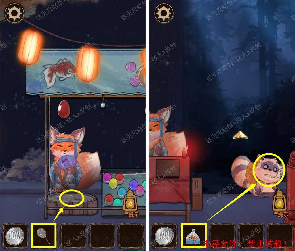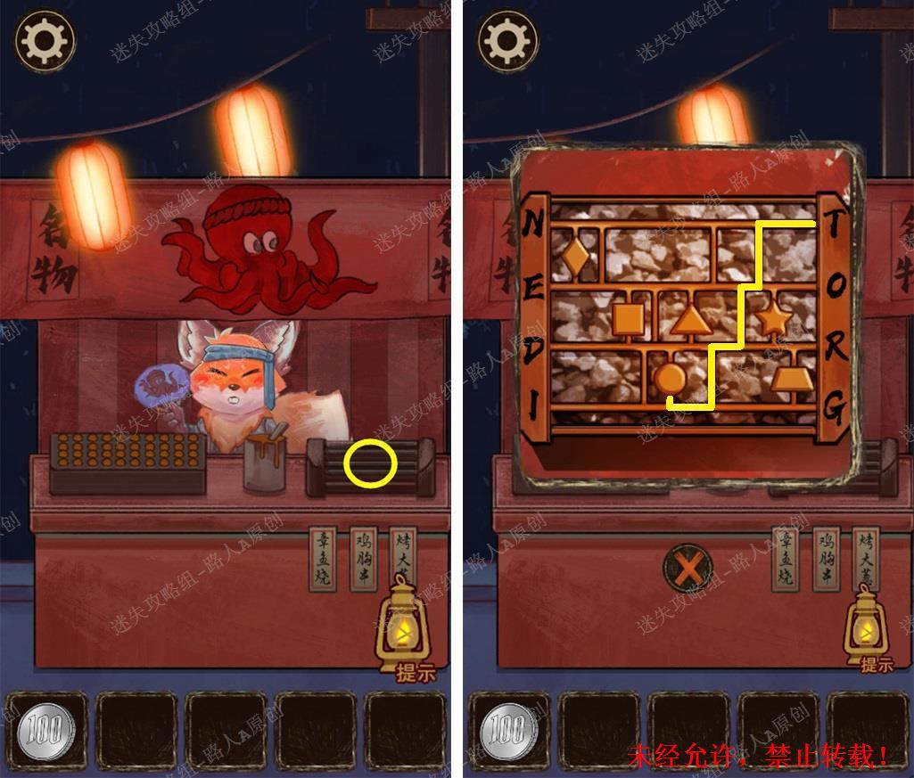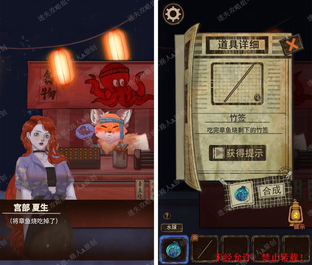 86.和章鱼烧的狐狸对话,吃掉章鱼烧得到【竹签】,组合【竹签】和【水球】得到硬币。86.1