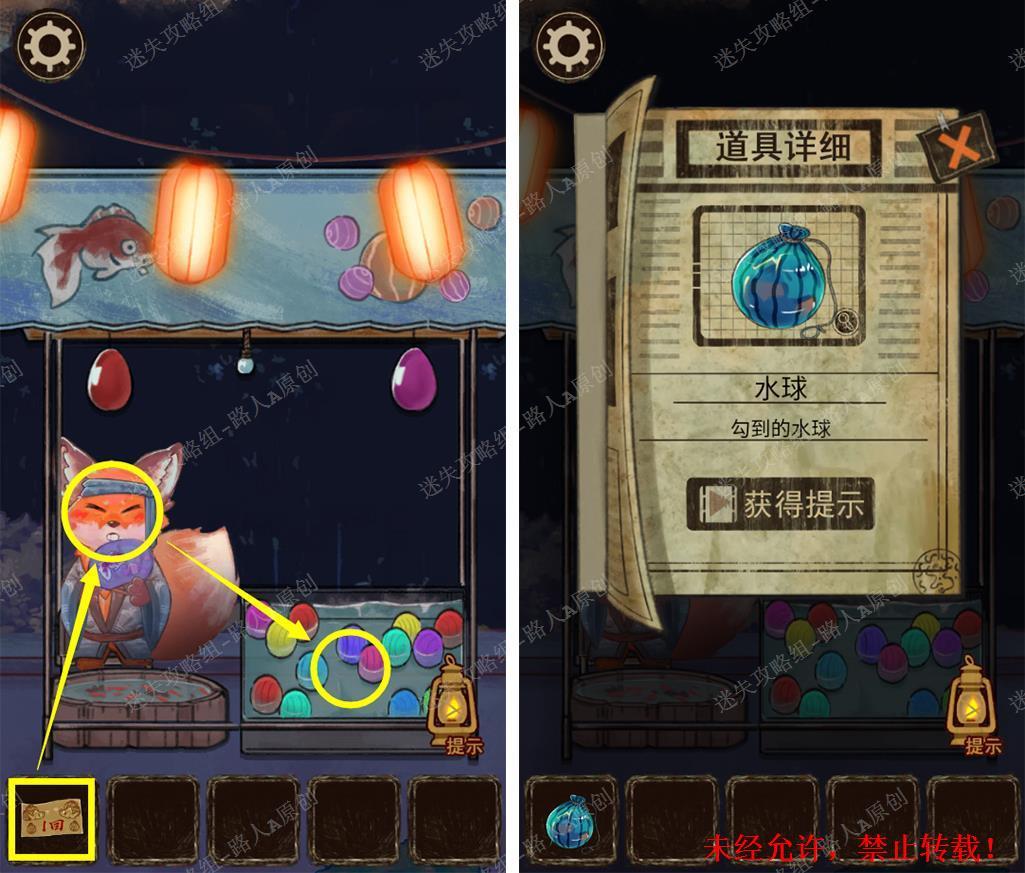 85.将【游玩券】交给狐狸,用工具勾出水球。85.1