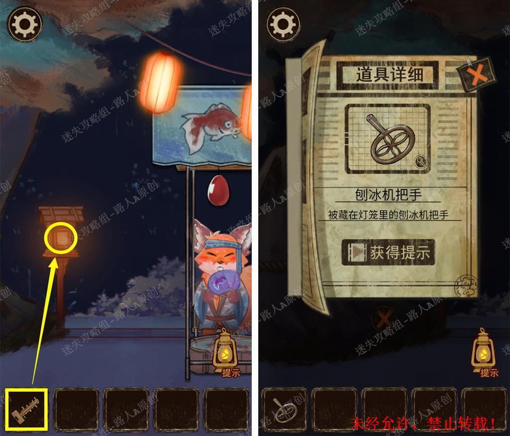 82.用【钥匙】打开灯笼,取得【把手】。82.1