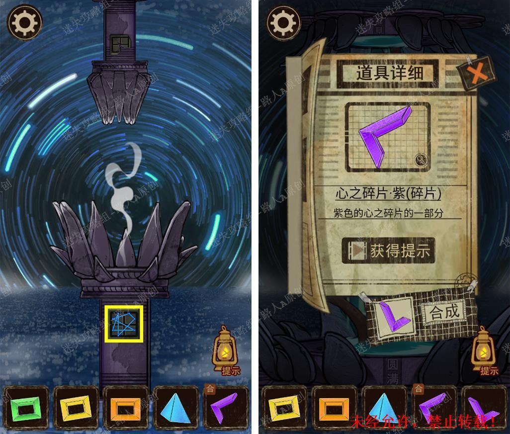 127.关闭右边第二个柱子(确保其它柱子都是开启状态),组合2个【心之碎片·紫】。127.1