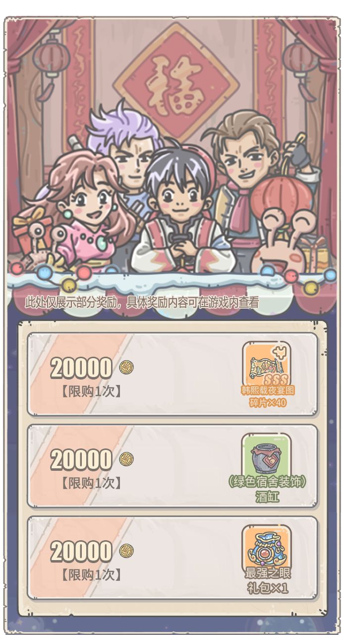 1、活动期间,可购买新春贺礼,连续3天领取奖励;