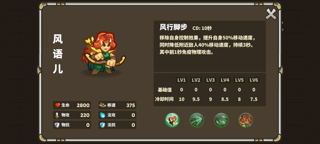 (理想情况下)。同时如果对方有肉盾,射手一定不能先死。不然对方肉盾会处理不掉,最后团战失败。对方有刺客的时候,尽量和前排站的紧一点。这样方便脱身之后能让前排把对方此刻留下。至于为什么要等吃完第一段伤害在一技能是因为一技能有一个非常宝贵的属性就是解控。如果不先把第一段控制解掉的话后续他的控制来的时候,就很有可能走不掉。而且我的出装是半肉出装方刺客一段伤害也是秒不掉我的。所以一技能能不能使用的好使用就是团战胜利的关键。但是由于一技能的升级只能进行CD缩减,而且这个比例还非常的小。所以在玩消耗流风语儿的时候并不推荐升级。二技能: