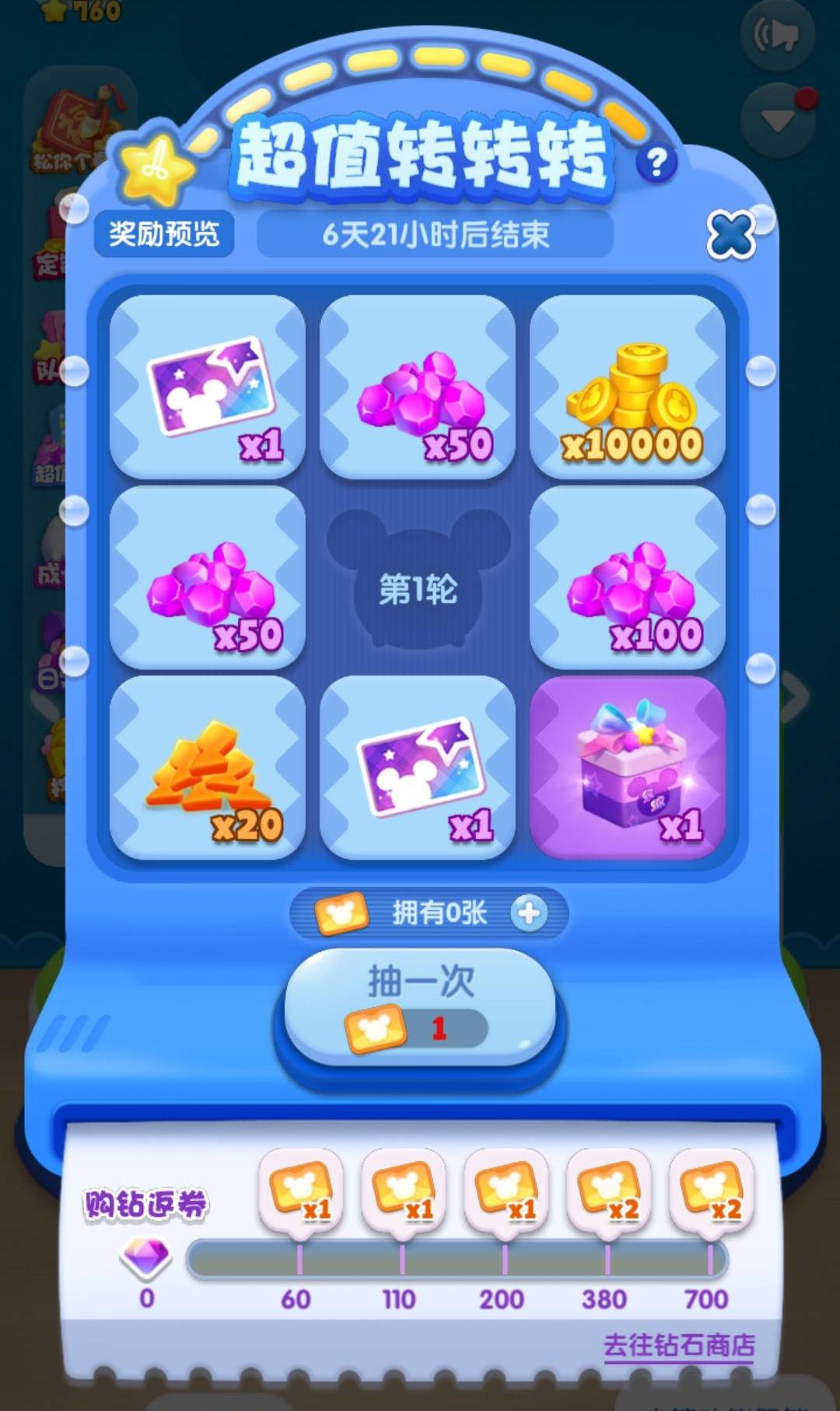 您可以通过参与“松”你个春联,或在松松商店中购钻返券的方式,获得[转转抽奖券]。