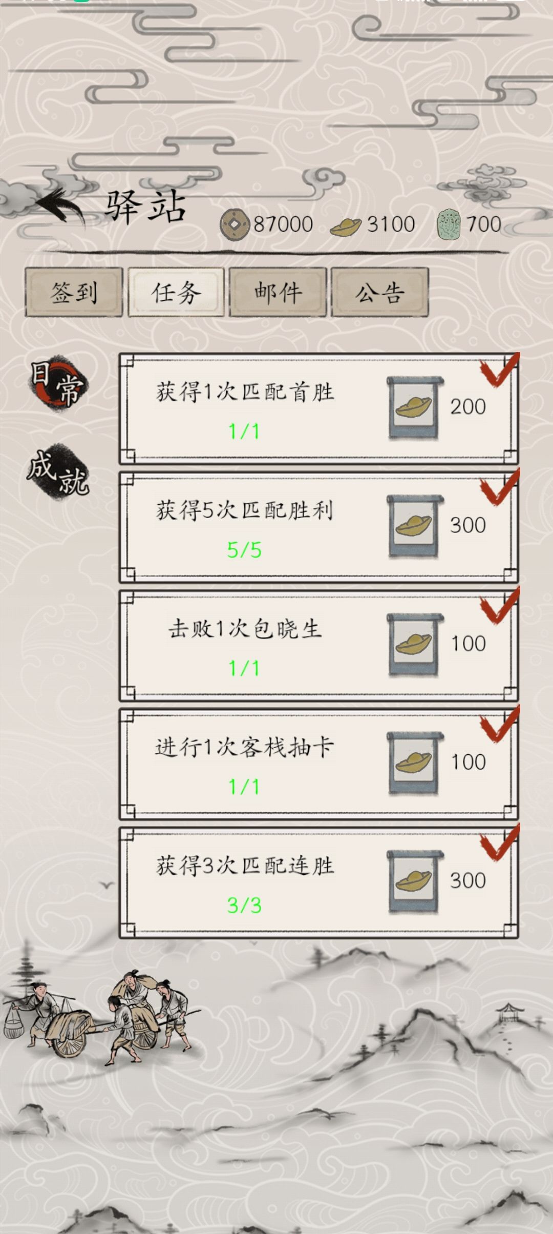 驿站,领取签到,每日任务,成就任务的地方,每日任务击败包晓生可以在二章第五回完成。