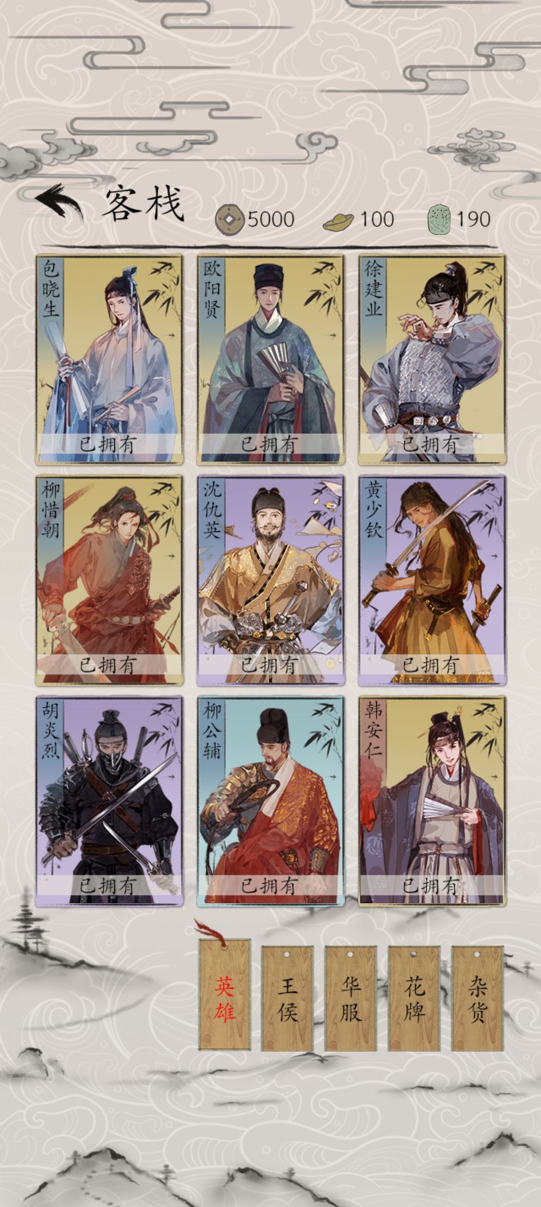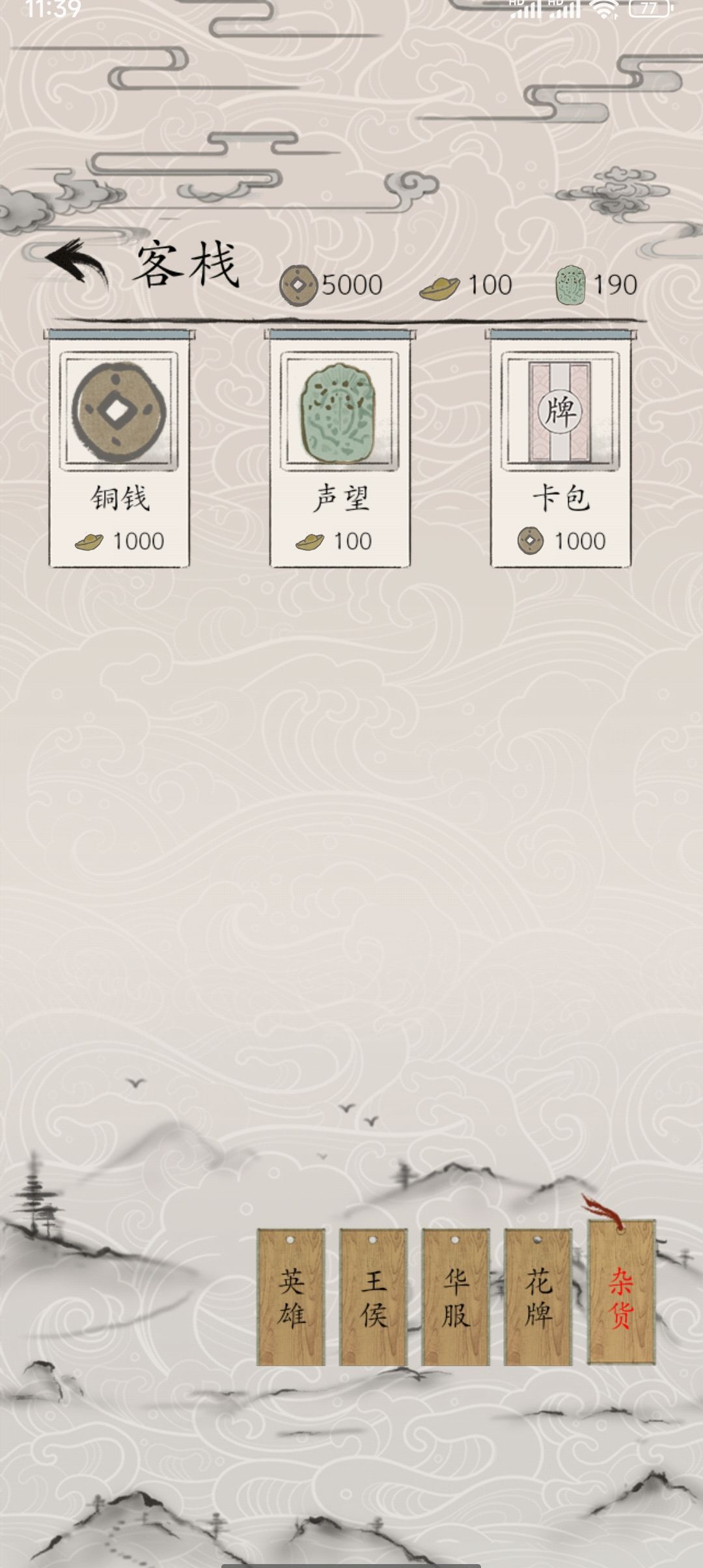 客栈,获得卡牌的地方,1000铜钱1包卡,声望相当于炉石的尘,元宝最好换声望。