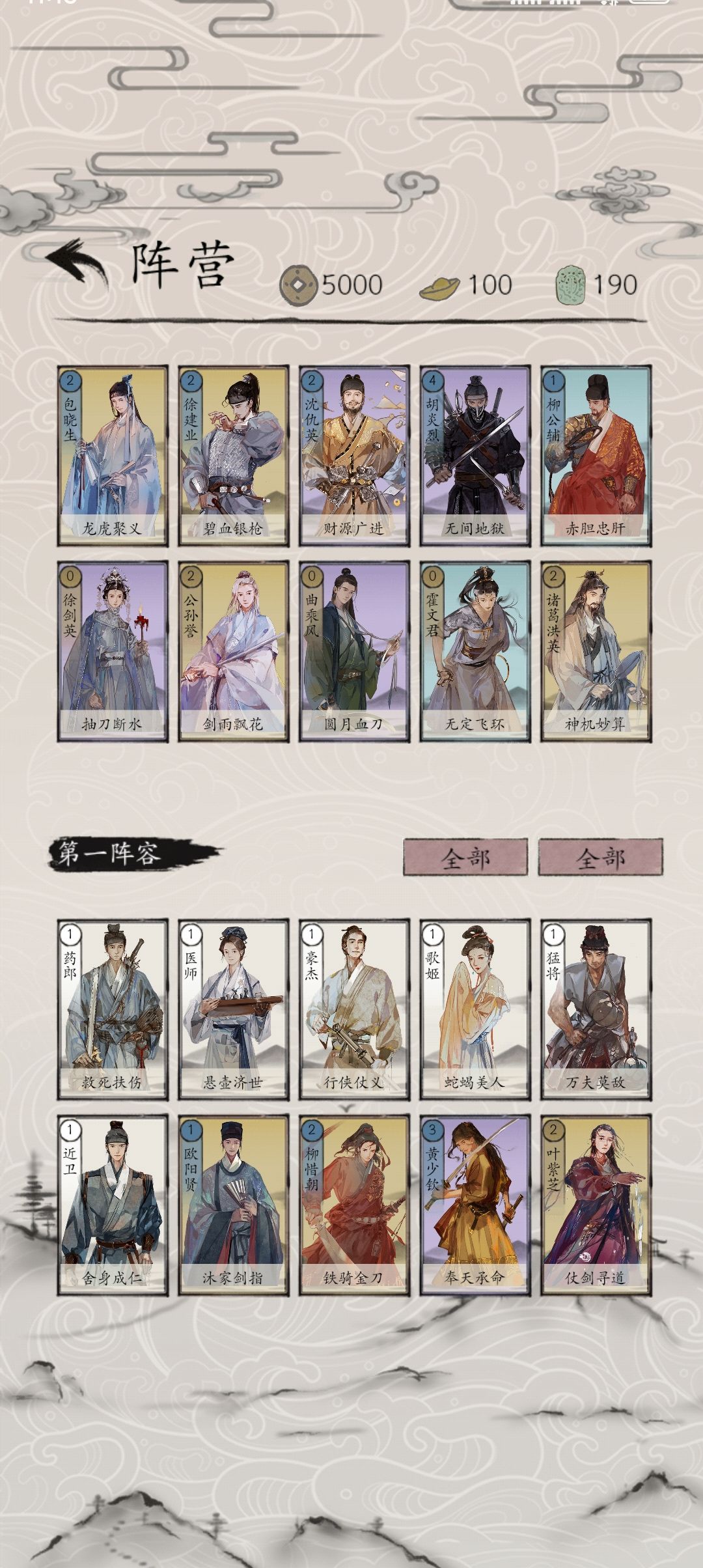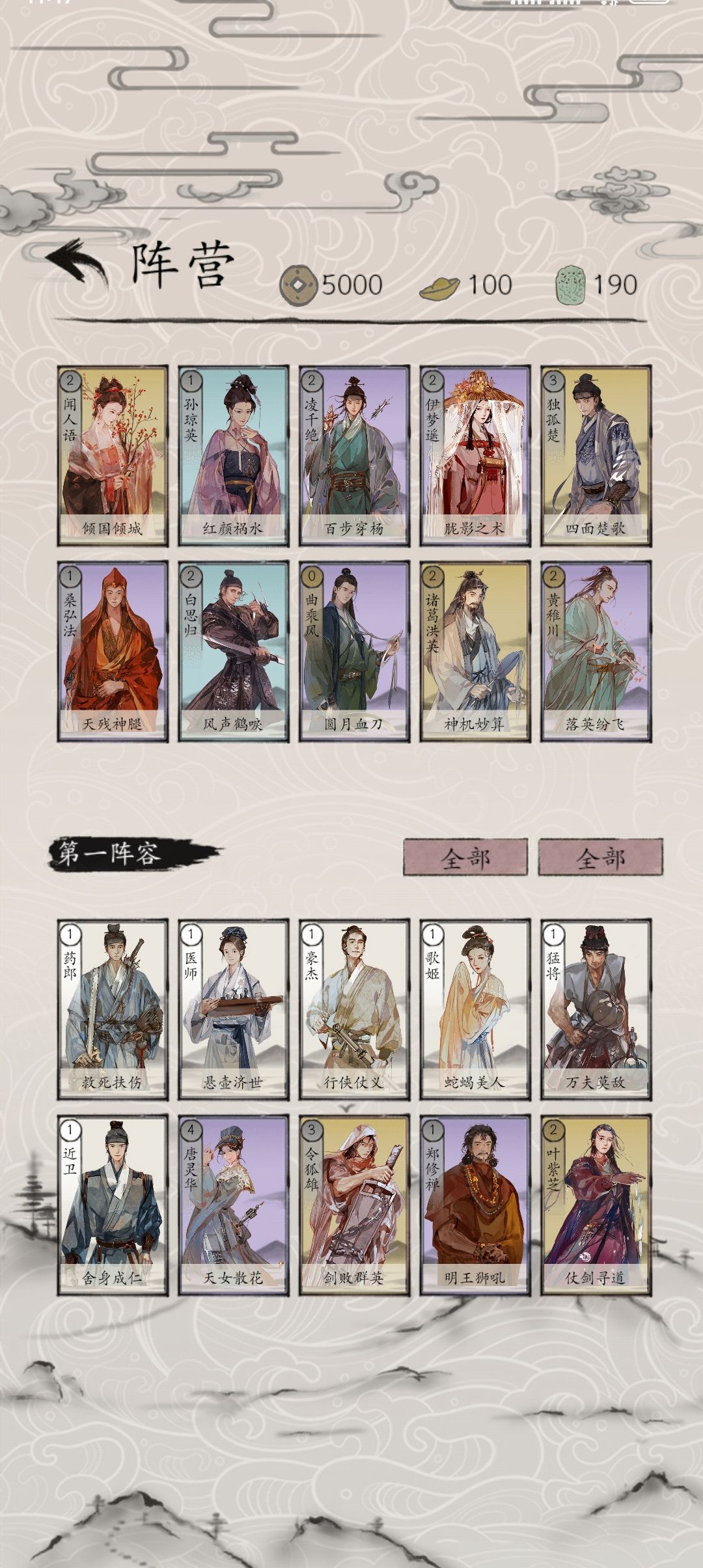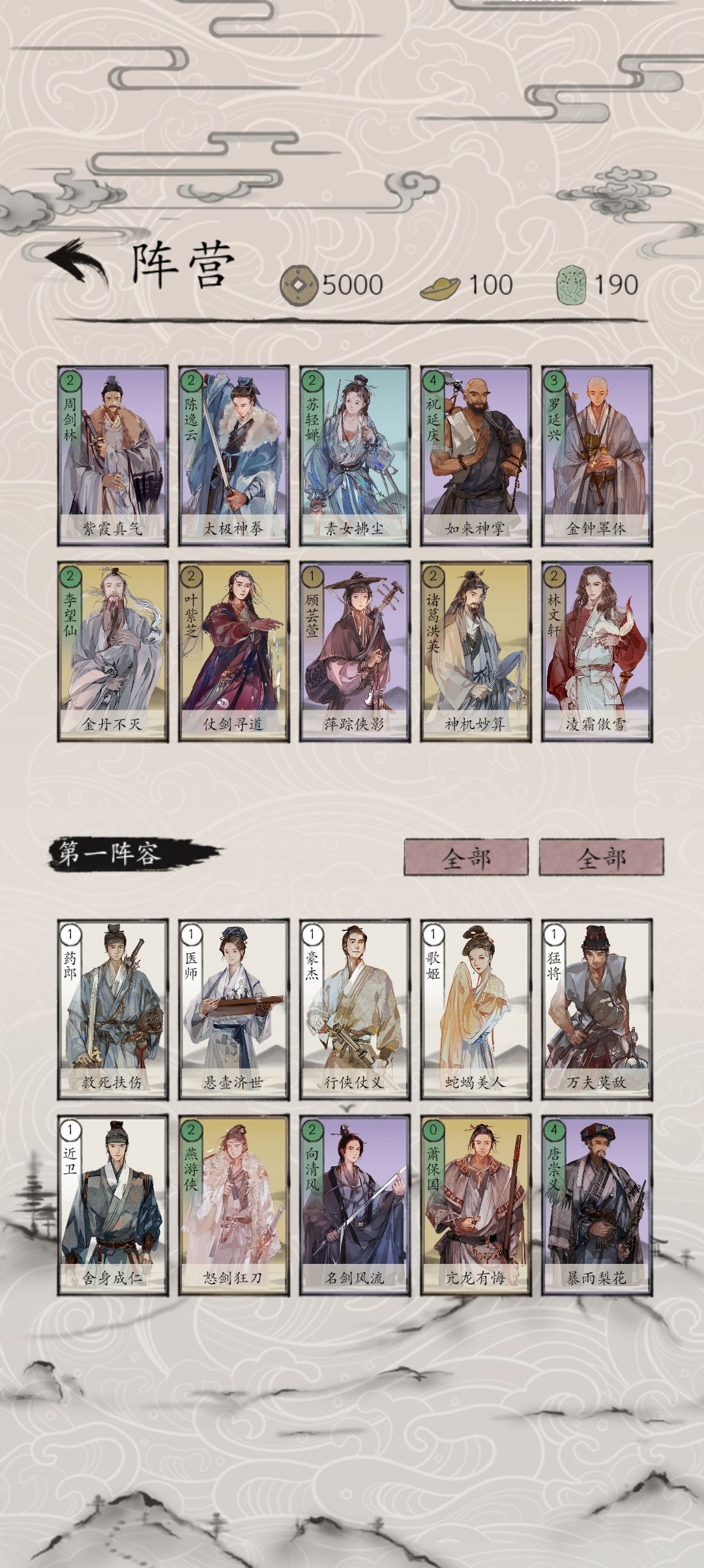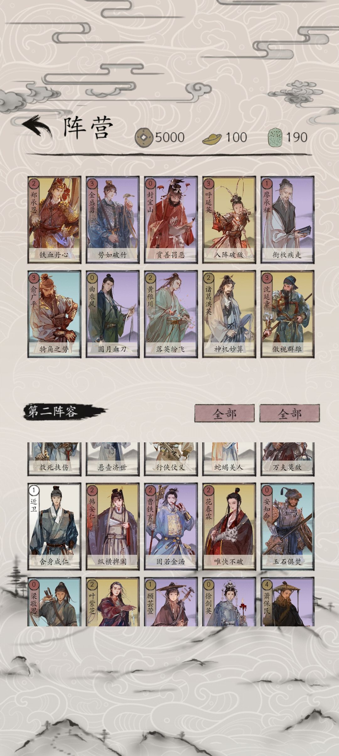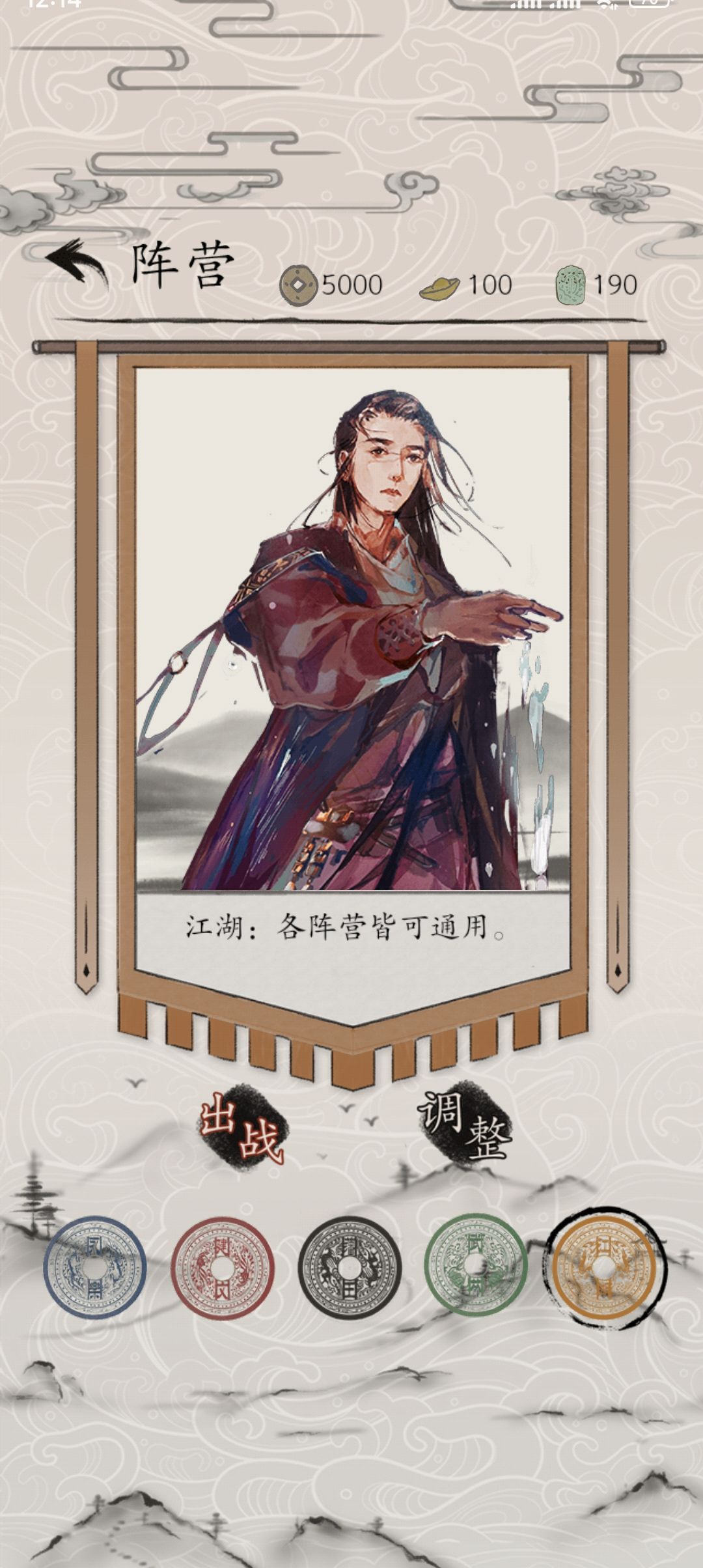 阵营,五个职业,江湖为中立,其它四职有专属卡牌和特点,需要解锁,最好用铜钱解锁,不解锁卡包不会抽到其职业卡,新卡卡包也不会抽到。