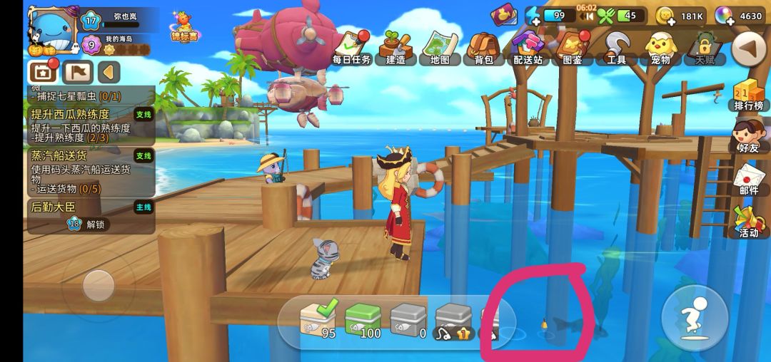 我尝试去继续钓鱼,却无钓鱼按钮,并且鱼饵甚至还在水中,鱼竿却无法抛出。